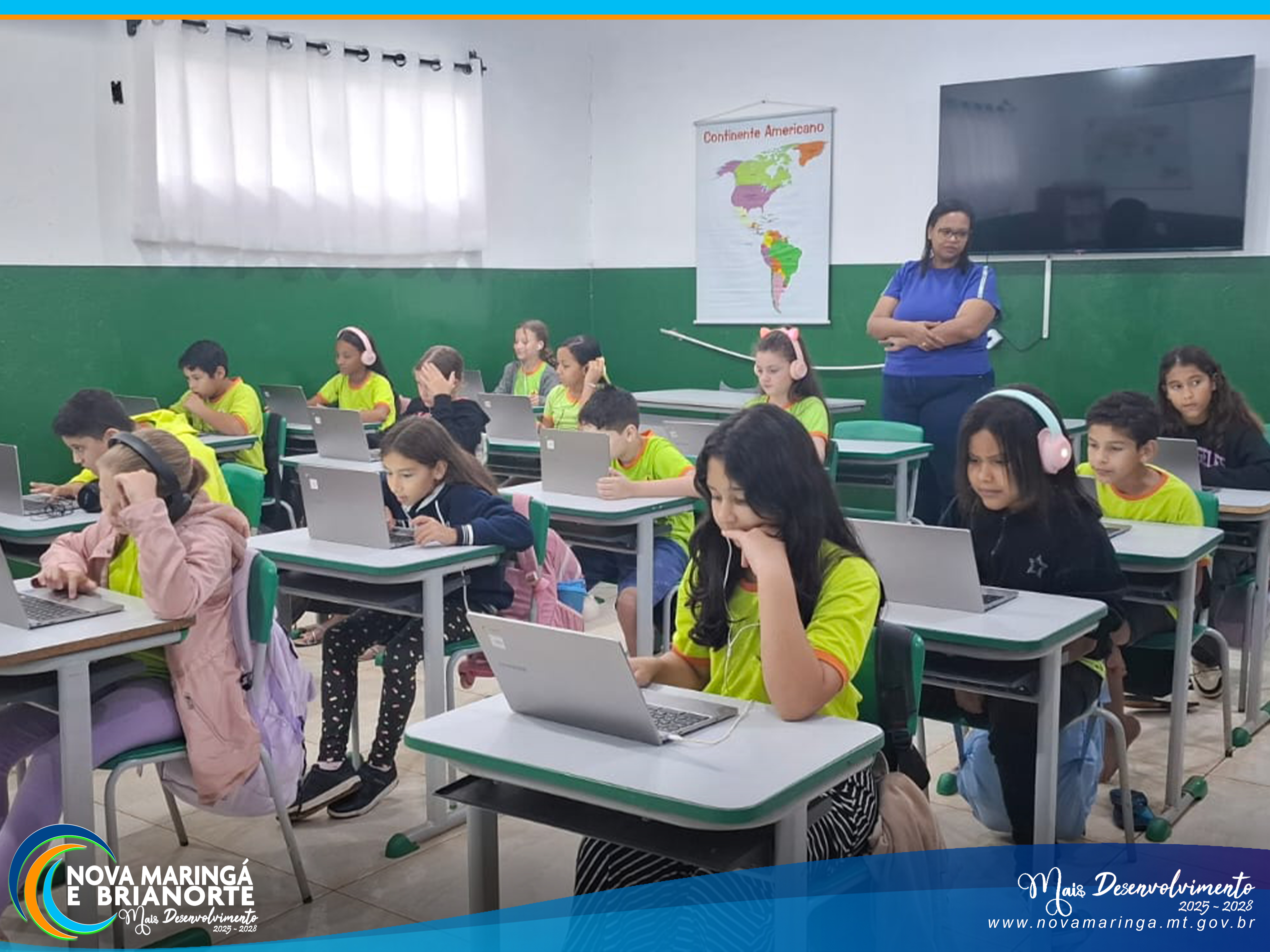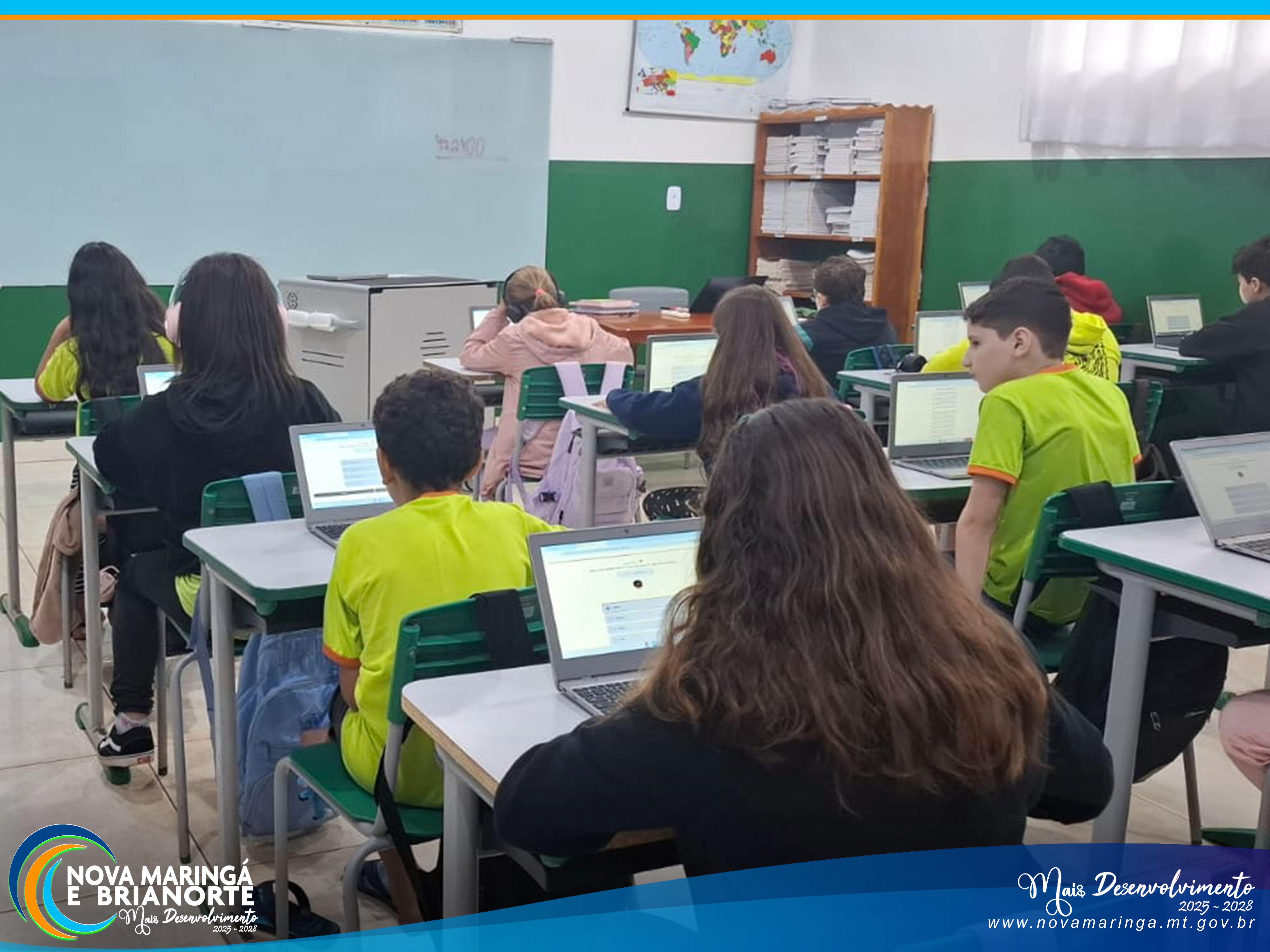 A turma do 5° Ano B da Escola Municipal Wilson Ribeiro de Nova Maringá, realiza no dia de hoje 26 de março de 2025 a primeira avaliação online Piloto de inglês para teste da plataforma, as avaliações oficiais online serão realizadas entre os dias 31 de março a 16 de abril. A avaliação é feita de modo online através dos chromebooks que vieram do estado de Mato Grosso através da SEDUC pelo Regime de Colaboração ao Município de Nova Maringá, foram recebidos 60 unidades para utilização nas disciplinas escolares. Os equipamentos foram destinados a melhorar o aprendizado dos estudantes da rede municipal e ampliar o tempo de estudo nas plataformas digitais.